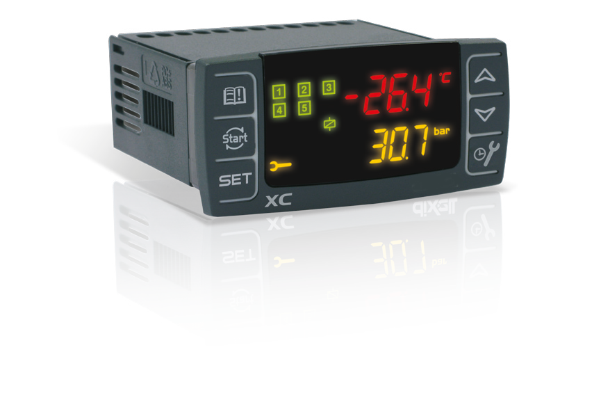 Die XC600CX Reglerfamilie ist gedacht um die gleichzeitige Steuerung von Verdichtern und Gebläsen, sowohl einer normalen als auch einer komplexen Verbundanlage einfach realisieren zu können. Die Verdichter dürfen damit stufig, Schraubenverdichter, Scroll™ oder Stream™ sein. Es gibt auch die Möglichkeit, zwei Saugkreisläufe mit gemeinsamer Verflüssigung zu steuern. Die Steuerungslogik mit neutraler Zone hängt von der Temperatur oder vom Druck in der Saugleitung für die Verdichter und in der Heißgasleitung für die Gebläse ab. Durch einen optimierten Rotationsalgorithmus können die Betriebsstunden der Lasten auf einem Gleichgewicht gehalten werden, um den Verschleiß der Lasten damit anzugleichen. Jede Last des Reglers hat ihren potentialfreien Schutzkontakt, dessen Aktivierung schaltet den Ausgang der Last sofort aus. Zur optimalen Sicherheit der gesamten Anlage verfügt der Regler über 2 weitere potentialfreie Digitaleingänge für die Hoch- und Niederdruckschalter, welche die ganze Verbundanlage im Notfall sofort ausschalten.