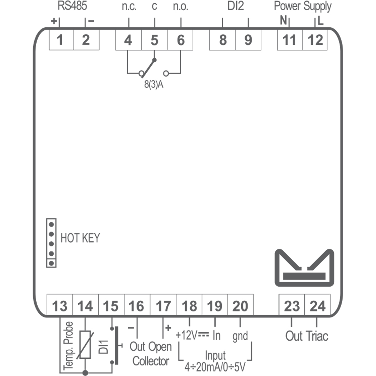 NTC, PTC, Pt100, TcJ, TcK, TcS, 4÷20mA, 0÷1V, 0÷10V