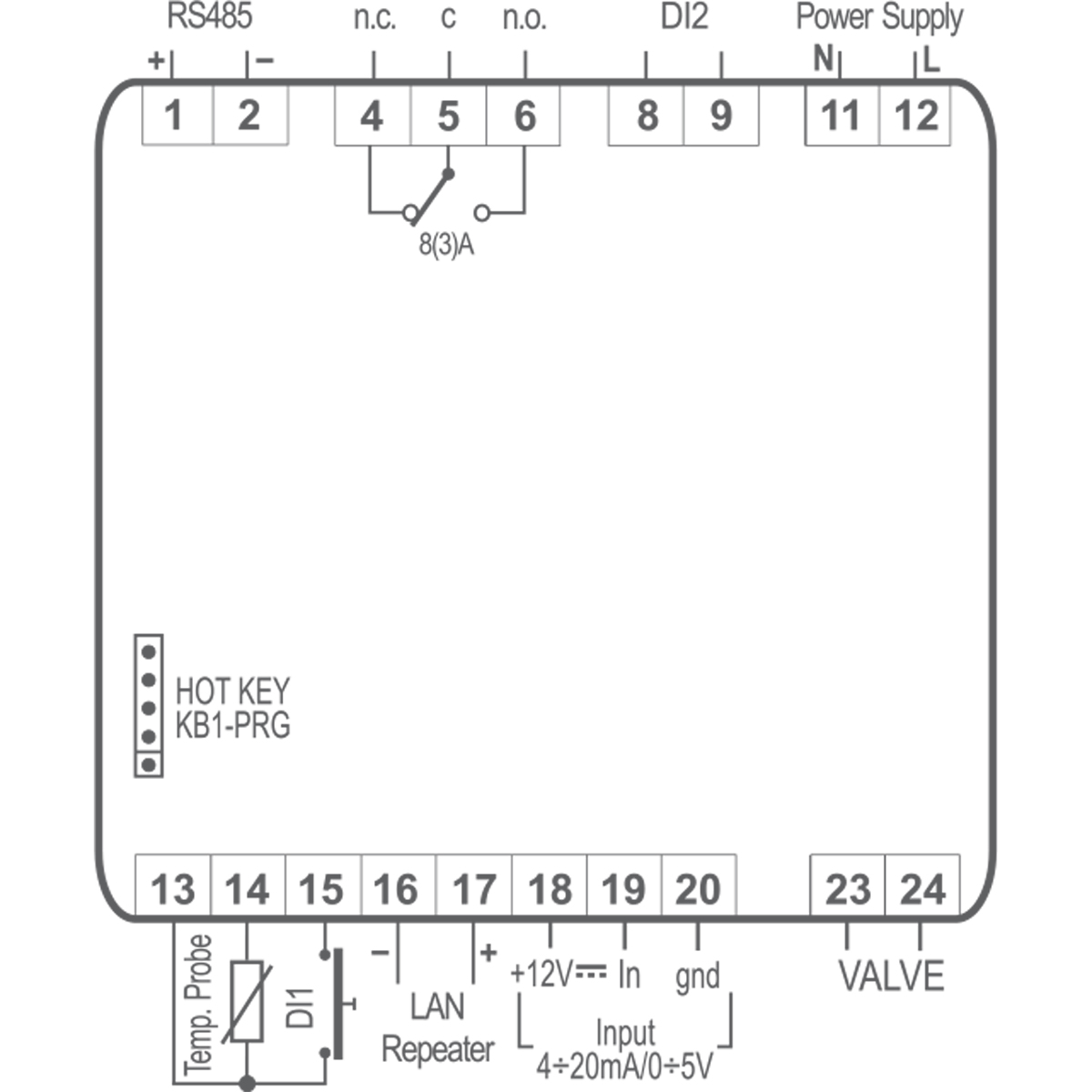 NTC, PTC, Pt100, TcJ, TcK, TcS, 4÷20mA, 0÷1V, 0÷10V