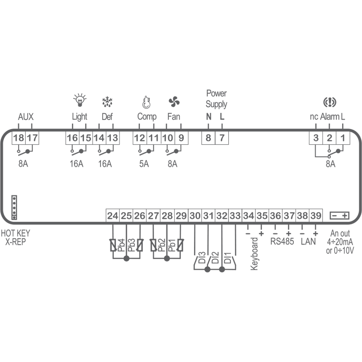 | NTC, PTC, Pt100, TcJ, TcK, TcS, 4÷20mA, 0÷1V, 0÷10V | |