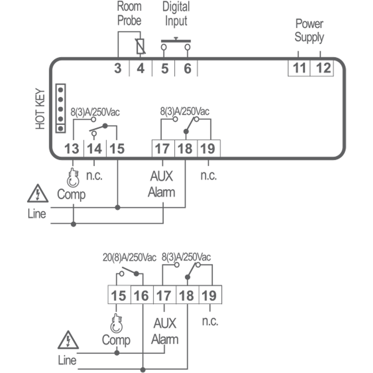 Digitaler Regler für NK mit Abtauung über Verdichterstopp und zusätzliches konfigurierbares Relais