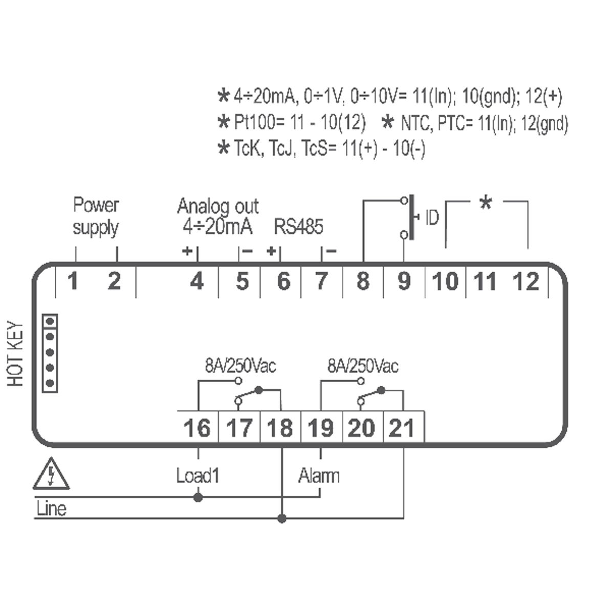 | NTC/PTC/4÷20mA/0÷5V |