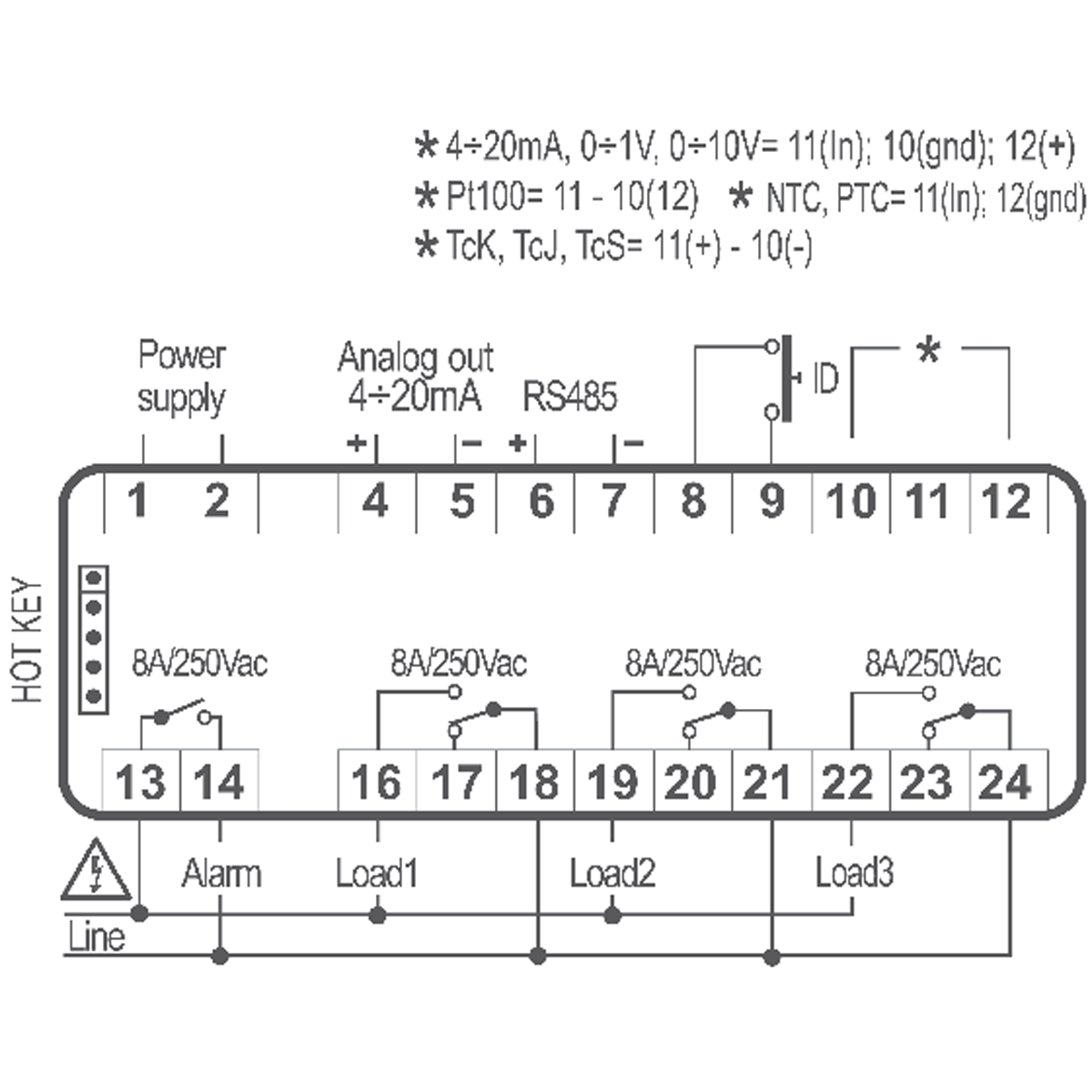 NTC, PTC, Pt100, TcJ, TcK, TcS, 4÷20mA, 0÷1V, 0÷10Vkonfig