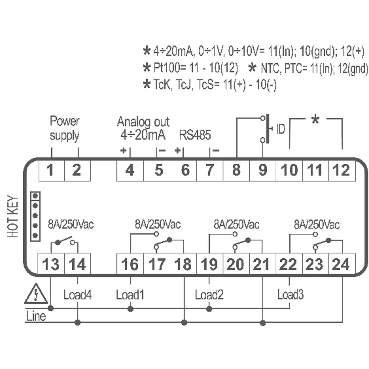 | 0÷1V, 0÷5V, 0÷10V, 0÷20mA, 4÷20mA, NTC, PTC, DI | |