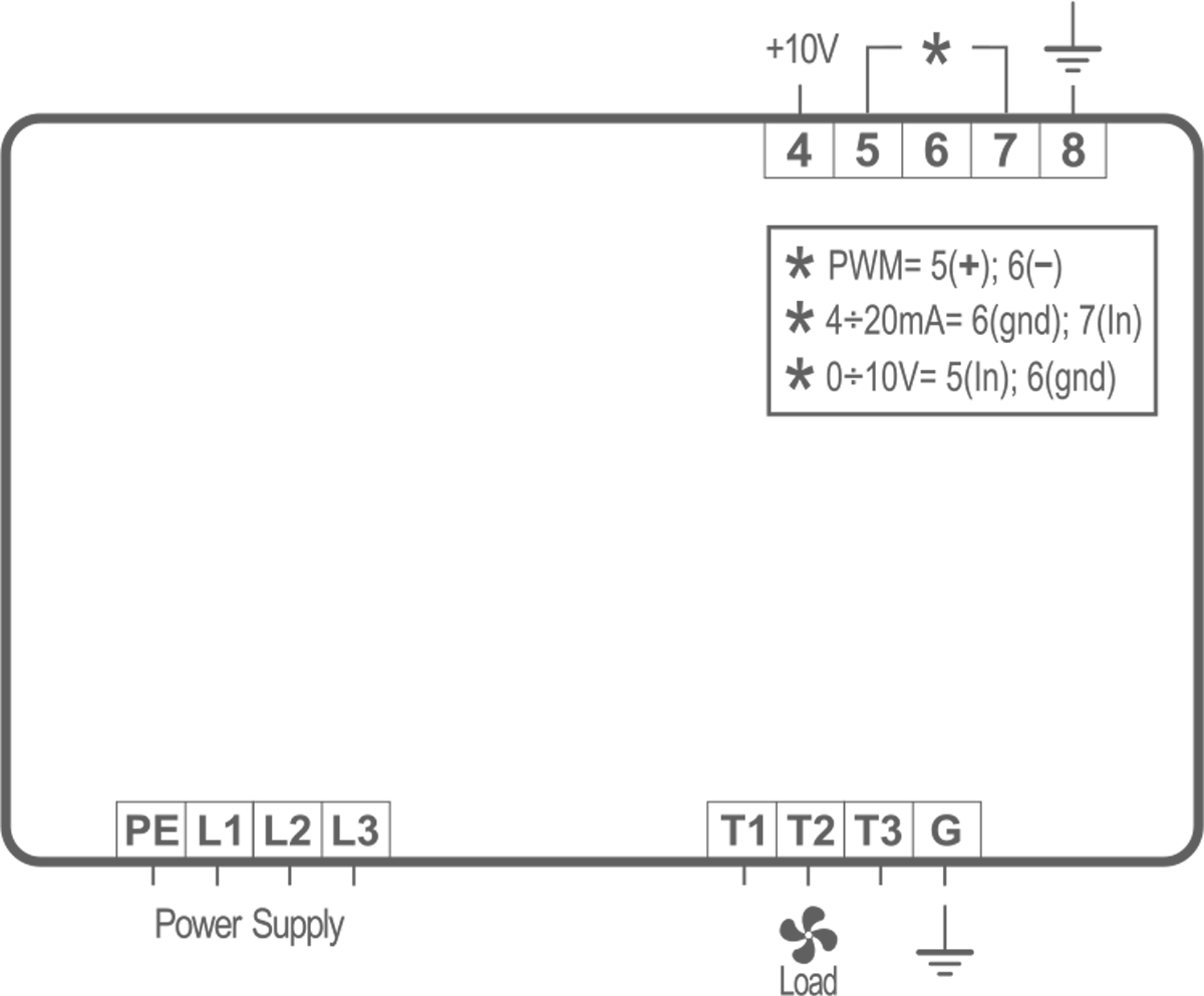Phasenanschnittregler für die Drehzahlregelung von dreihphasigen Ventilatoren mit spannungsgesteuerten Asynchronmotoren Ideal für drehzahlgeregelte Motoren mit 8 bis 40A Übergroße Kühlkörper für bessere Wärmeableitung Integrierter Wärmeschutz Überdimensionierte Leistungsstufen Verwendung optimierter Radiofrequenzfilter Erhältlich mit Gehäuse aus selbstverlöschendem ABS (IP55) oder Aluminium (IP20) Reduzierung der Verdrahtungszeiten und -kosten dank Federanschlüssen mit Schnellkupplung und praktischen Kabeldurchgängen Kompatibel mit Dixell-Reglern mit PWM-Ausgängen, 4÷20mA, 0÷10V, wie die Serien iPro, XC600, XM600, …