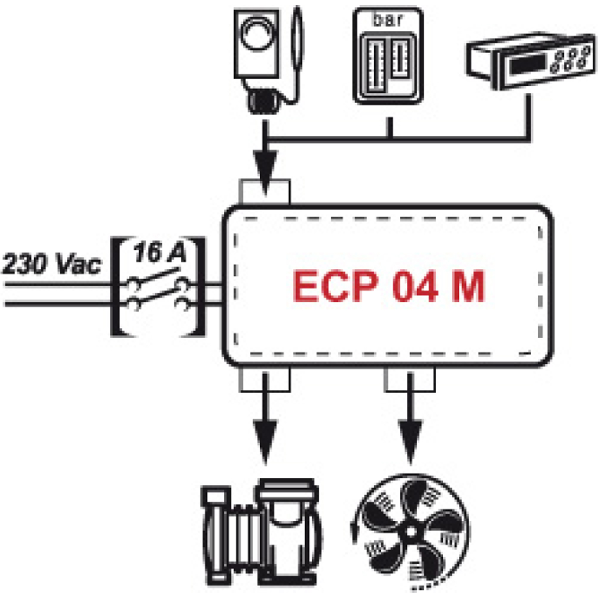 ECP 04M für Wechselstromanlagen (230 VAC) ECP 04 für Drehstromanlagen (400 VAC) Direkte Ansteuerung o.g. elektrischer Komponenten Elektrische Schutzeinrichtungen wie Leitungsschutzschalter, Überlastrelais etc. Alarmanzeige über LED Display