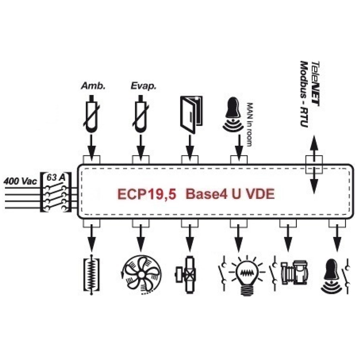 Drehstromanlagen (400 VAC) Direkte Ansteuerung o.g. elektrischer Komponenten Elektrische Schutzeinrichtungen wie Leitungsschutzschalter, Überlastrelais etc. Alarmanzeige über LED Display RS 485 Schnittstelle zur Anbindung an das TeleNet System oder an das XWEB Fernüberwachungssystem