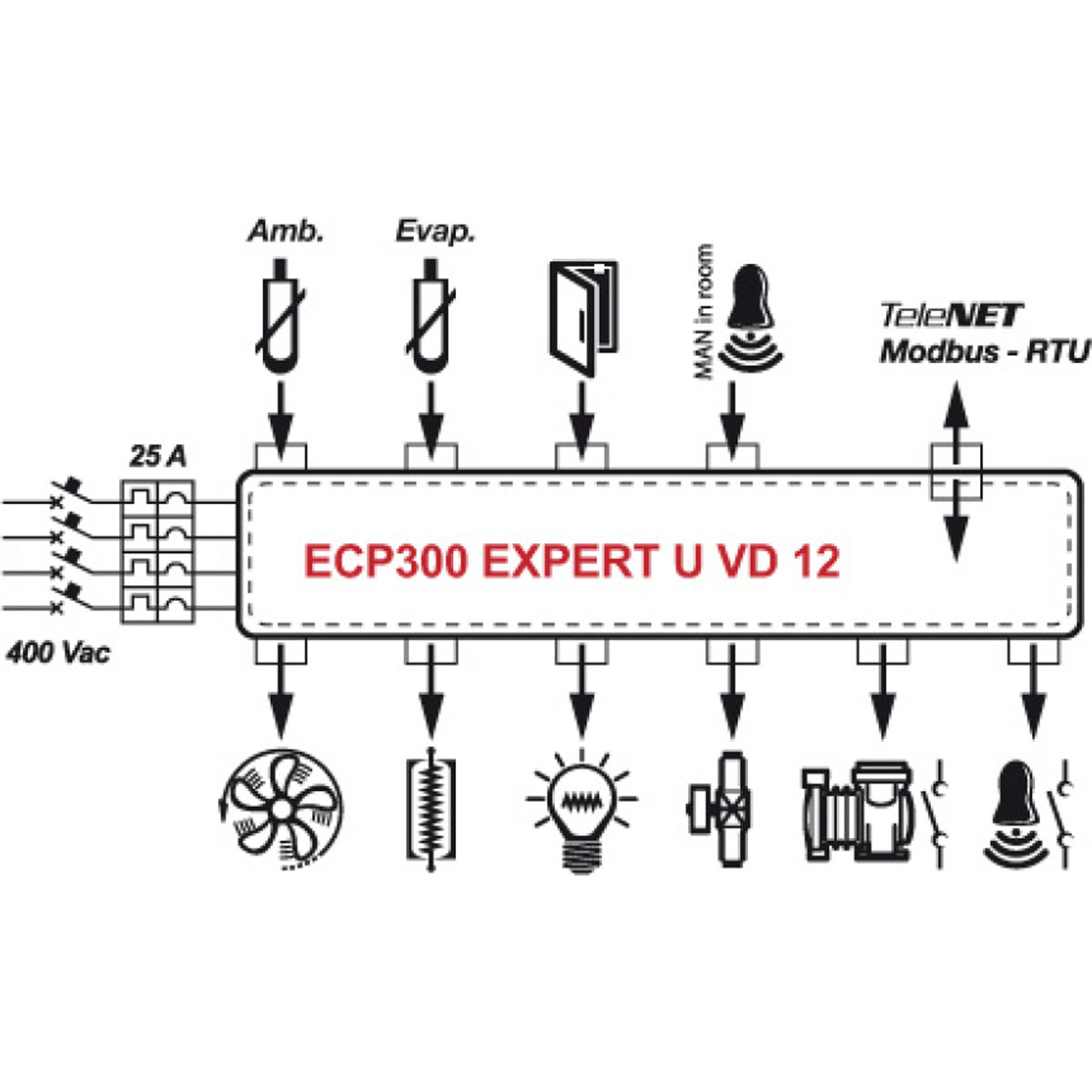 Drehstromanlagen (400 VAC) Direkte Ansteuerung o.g. elektrischer Komponenten (Verdichter potentialfrei) Elektrische Schutzeinrichtungen wie Leitungsschutzschalter, Überlastrelais etc. Alarmanzeige über LED Display RS 485 Schnittstelle zur Anbindung an das TeleNet System oder an das XWEB Fernüberwachungssystem.