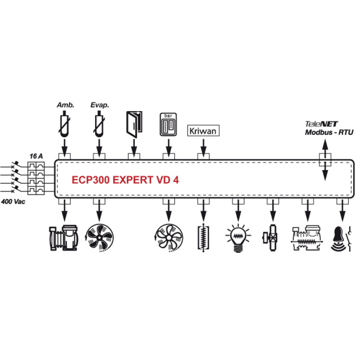 Drehstromanlagen (400 VAC / light) Wechselstromanlagen (230 VAC / mono) Direkte Ansteuerung o.g. elektrischer Komponenten Elektrische Schutzeinrichtungen wie Leitungsschutzschalter, Überlastrelais etc. Alarmanzeige über LED Display RS 485 Schnittstelle zur Anbindung an das TeleNet System oder an das XWEB Fernüberwachungssystem.