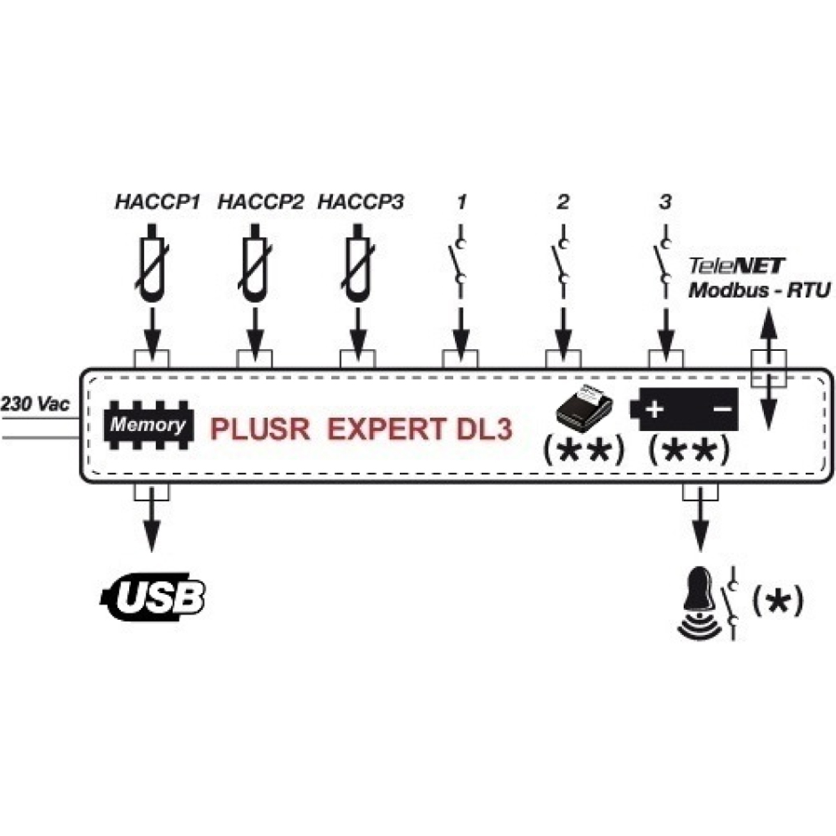 ECP Plus R200 Expert-DL3 3 Datenlogger gem. HACCP. Einsatz für Normal -und Tiefkühlzellen.